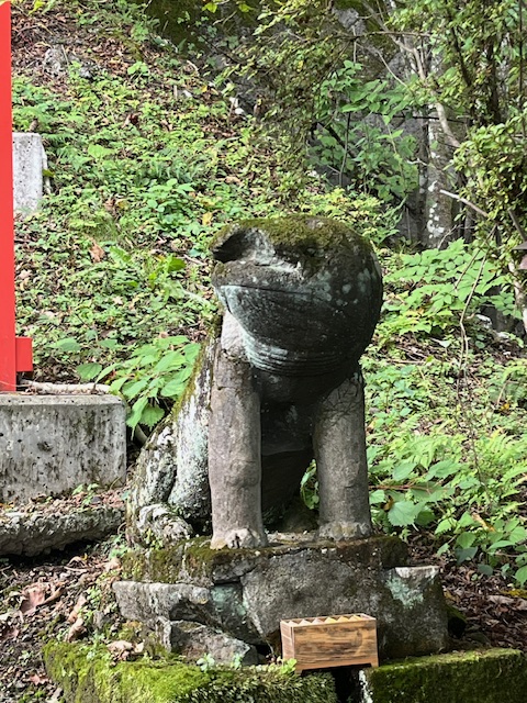 一礼して鳥居を抜けると、長野県内で一番古いという狛犬が待っている。